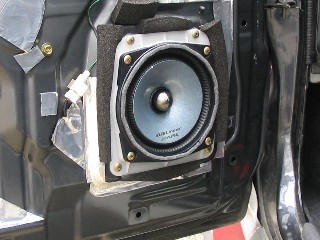ウーハーをドアに取り付ける。ツィーターはダッシュボードに取り付けた。う〜ん、かっこいい〜。