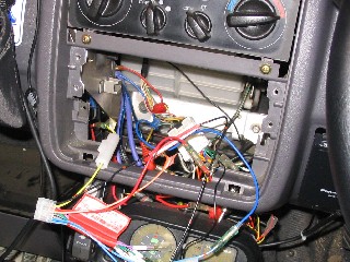 旧ナビの配線の一部を取り外す。外さなければならない部分が多く、結構時間がかかる。