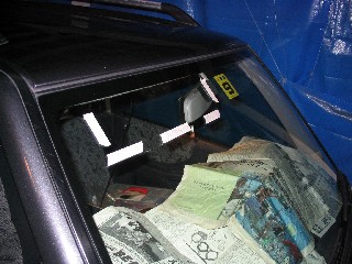 アンテナ給電部の両面テープがすぐ剥がれてしまい慌てて貼りなおしたら助手席側が斜めになってしまった。