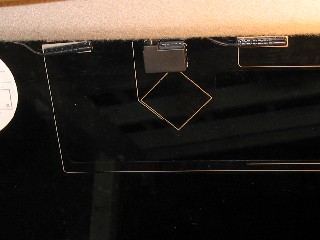フィルムアンテナの貼り付けを行う。TVだけでなくGPSまでもフィルム化されている。