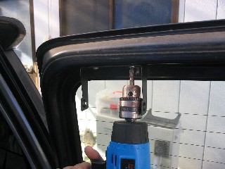 グローブボックスのふたに穴をあけてモニタを取り付けた。