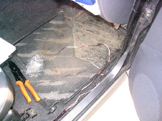 旧ナビの本体を運転席シート下から取り外し。配線はそのまま。