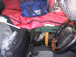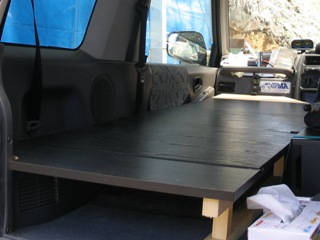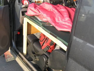 そこで、仮眠ベットを製作しました。これで遠出の時、どこでも寝られて便利になりました。