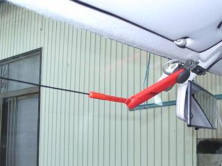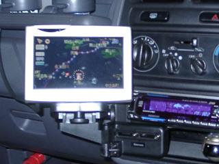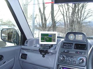 テレビスタンドはパジェロで使われていたアシストグリップに取り付けるタイプのものをとりあえず流用したが、パジェロに比べてアシストグリップが細くまたネジの部分が下部に当たる為、前後を逆向きに取り付けた。しっかり固定されていないがとりあえず落下の心配は無いだろう。
