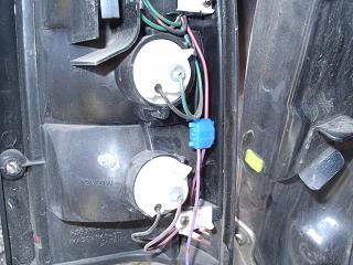 前進中かバック中かを検出するため、テールランプ部を外してバックランプの配線にリバース信号を噛み込ませる。(右下写真)