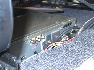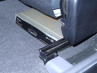 助手席の下は既にアンプを設置していたため、運転席の下に設置した。ナビ本体の底面にはマジックテープが貼り付けてあったので置くだけでしっかりと固定された。