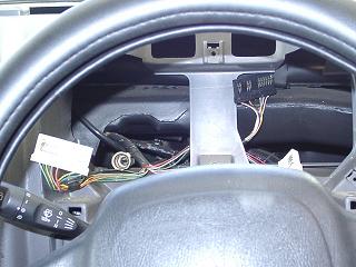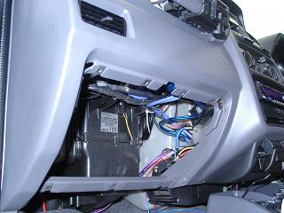車速信号の取り出しには一番苦労した。事前に入手した資料を参考に運転席足元の配線を見たが奥まった場所で見るのがやっとで手を入れるのは到底無理な状態だった。しかし、資料と実際の配線の色などが違うためここからの車速信号の取出しをあきらめ、スピードメータの裏側から信号を取り出す事にした。