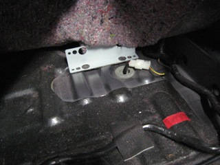 運転席のシートを外し、カーペットを剥がして付属の両面テープで金具を貼りつける。