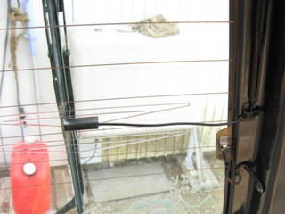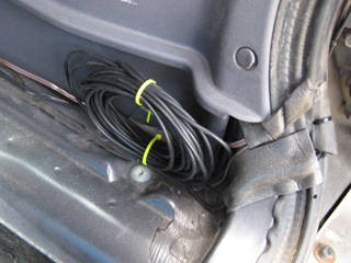リヤアンテナを貼り付け、配線を引きこむ。説明書に書かれている防水対策は手を抜いてしまいました。
