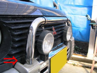 初期型のグリルガードは金属パイプ製ですが、マイナーチェンジで樹脂製に変わりました。