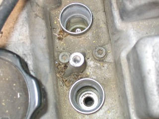 | インタークーラーをちょっとどかして・・・ | 市販のプラグレンチでプラグを外す。 | プラグを外したところ。 |