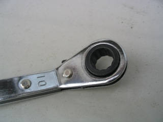 | インタークーラーを固定しているボルトの1本が、場所的にソケットレンチが入らないので、インタークーラー交換時は苦労しました。 今回は、100円ショップで買った板ラチェットが大活躍♪インタークーラー交換の前から買っておくべきでした。 | ||
