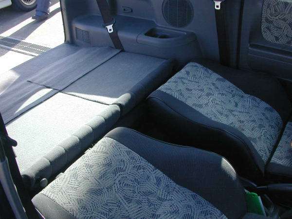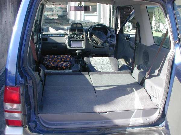 これで、シートはフルフラットになりますが、前席の位置が低いので完全には高さが合いません。