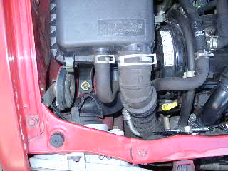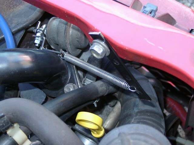 スプリングをかける金具(ステー)を取り付ける場所が無かったので左写真の様にホーンを移設した。スプリングをかけて少しずつステーを動かし走りながらブースト圧を調整。取り敢えず0.9Kg/cu(平方)に設定した。(ノーマルは0.75Kg/cu)